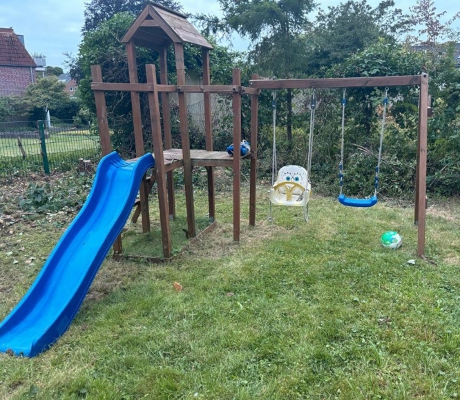 Biete zum selbstabbau ein Spielegerüst mit Schaukeln und Rutsche an.