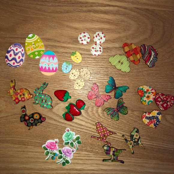 Knöpfe Holzknopf Konvolut nähen basteln DIY Osterei Hase Rosen