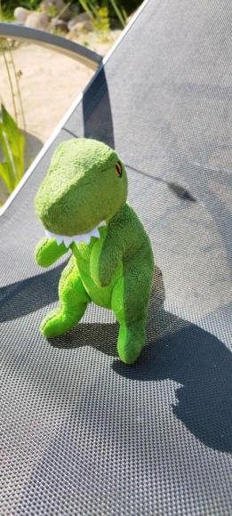Falls ihr jemanden kennt, der seinen Dino vermisst, oder wisst, wie er heißt (steht auf seinem Schild!) – sagt Bescheid! Dann darf er gerne abgeholt werden.