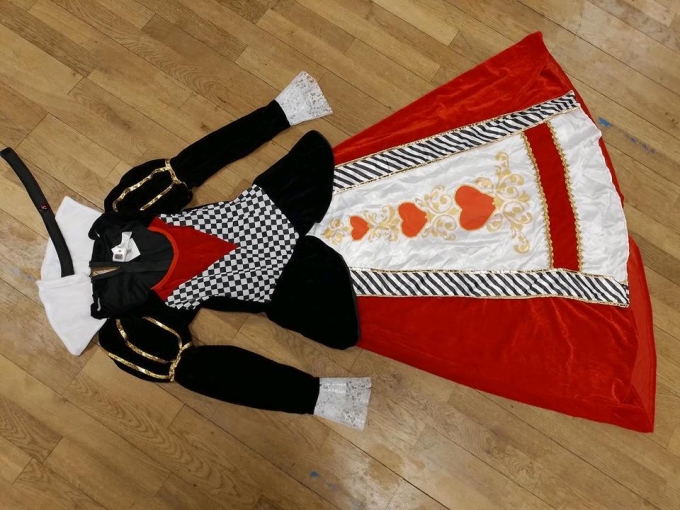 Königin Kleid, Poker Königin. Fasching Theater Karneval Größe M Sehr hochwertig. Schwarzer Oberteil velour, Rock rot Oberschicht velour. Verzierung gold. Katalogpreis 89€.