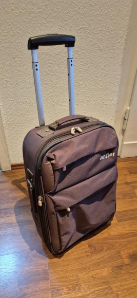 Sehr gut erhaltener Reisekoffer mit vielen Taschen. Und wenn es mal mehr ist, dann kann man ihn um ca. 3 cm erweitern. Mit gut funktionierenden Rollen.