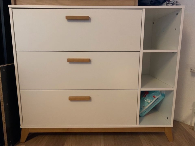 Schöne Kommode mit tiefen Schubladen und viel Stauraum. Der Wickelaufsatz kann abmontiert werden, sodass die Kommode auch so benutzt werden kann. Aufsatz ist auf dem Bild abmontiert, ist aber dabei. Gebrauchter, sehr guter Zustand.