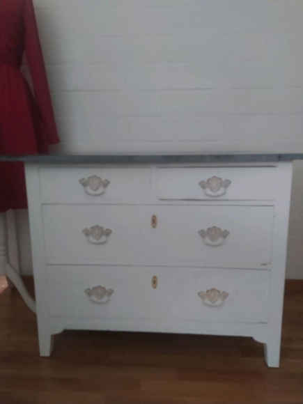 superschöne Kommode im Antik Look restauriert. Schubladen, schöne Griffe, Steinplatte aufgelegt, unproblematischer Transport (abgebrochenes Eck).
