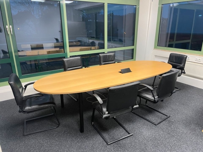 Schöner Konferenztisch mit integrierter ausklappbarer BACHMANN-Steckdosenleiste ( 2 x 230V, 1 x HDMI)