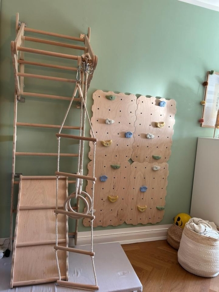 Wir verkaufen eine sehr hochwertige Kletterwand inklusive Sprossen, Ringen, Rutsche sowie Leiter der Firma MAMOI. Im neuen Kinderzimmer wird leider kein Platz für sie sein; gekauft haben wir sie zum Originalpreis erst vor knapp einem Jahr.