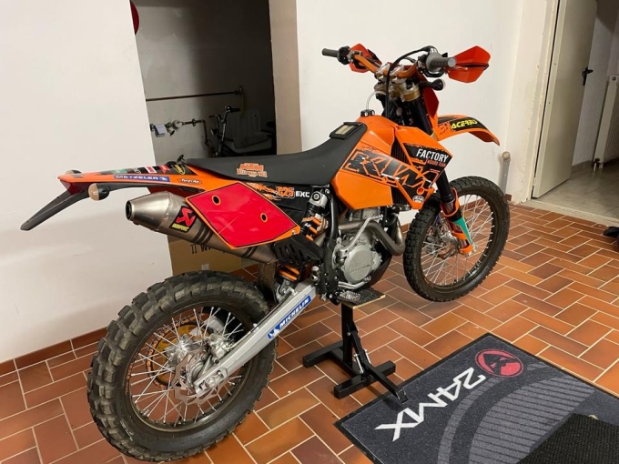 Hallo verkaufe hier einen wenig genutzten akrapovic endschaldämpfer verbaut war er an einer exc 525 bj 2007 er passt sich an die neueren Modelle mit 50mm Anschluss