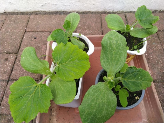 Wir haben noch ein paar Kürbispflanzen übrig, 3 verschiedene Sorten.