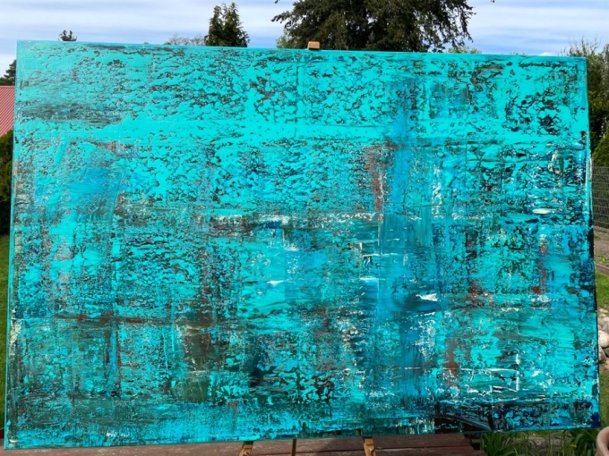 Die Oberfläche des Bildes ist durch den mehrfachen Auftrag der Farbe auch haptisch ein Erlebnis.