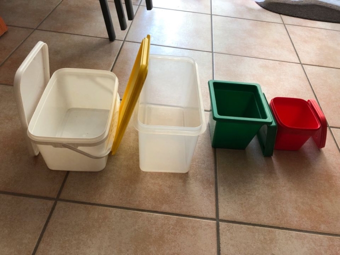 Biete verschiedene Größen von Einern und Behältern mit Deckel an. Gebrauch für Küche, Spielsachen, Werkstatt und Tierhaltung. Begrenzte Menge ! Preis verhandelbar und auch nach Menge, ab 50 Cent .