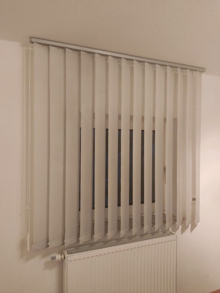 Wir verkaufen den abgebildeten gebrauchten Lamellenvorhang in hellgrau.