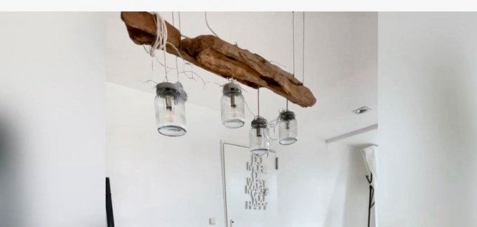 Nur Abholung: Das Treibholz ist ca 84 cm lang und in Teilen 20 cm breit. Vier Gläser samt Birnen sind mit dem Stromkabel am Treibholz befestigt.