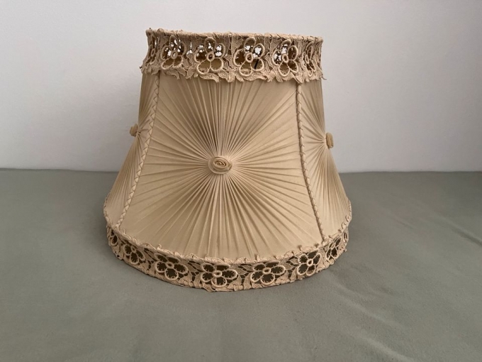 Schöner sehr alter dänischer Lampenschirm mit Seide bespannt. Hat ein paar Macken, ist aber noch gut nutzbar und macht wunderbar weuches gemütliches Licht.
