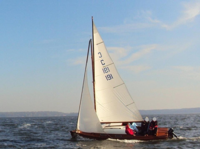 Ich verkaufe meinen 15er - Jollenkreuzer Baujahr 1959 sehr gepflegt, Knickspantbauweise, Boden aus Eiche, Seiten/Deck aus Mahagoni, segelklar (Gaffeltakelung) , 4PS Yamaha (Zweitakter) ;