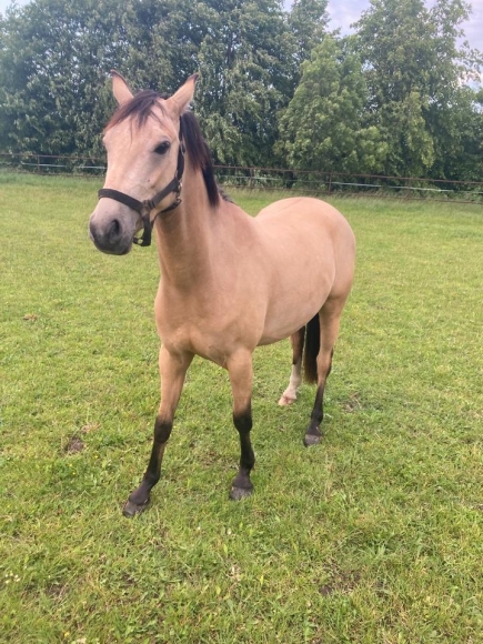 Er ist drei Jahre alt und wurde locker angeritten und genießt nun wieder etwas Freizeit.