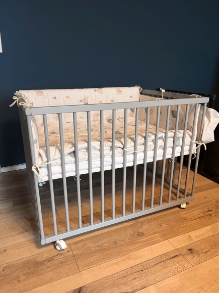 Laufstall, grau, auf drei Höhen verstellbar, mit Matratze und Einlage, nur Abholung