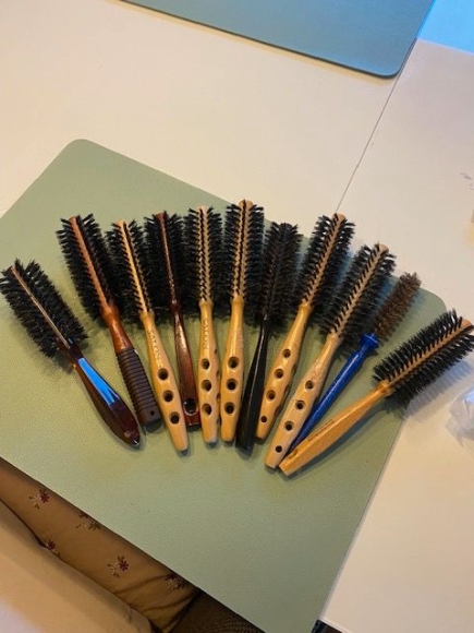 Die Lockenwickler sind aus Naturborste und eignen sich herrvorragend, um sie zusammen als Fönwickler in die Haare zu drehen