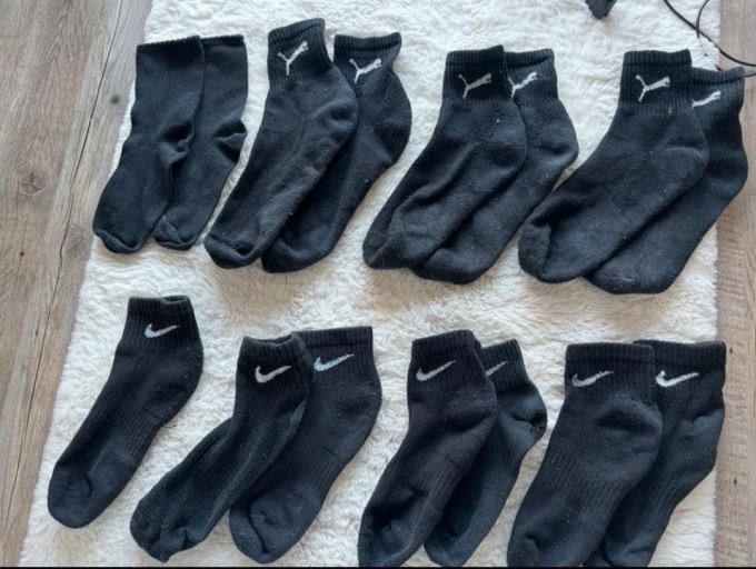 6 Paar Puma (schwarz, knöchelhoch), 6 Paar Nike (schwarz, knöchelhoch und sportlich)