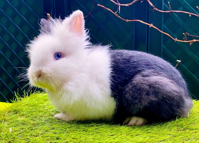 Little Panda wurde am 04.08.2022 geboren und ist gegen Myxomatose und RHD 1+2 geimpft. Er ist ein Satinlöwenrammler in schwarz-weiß mit strahlend blauen Augen.
