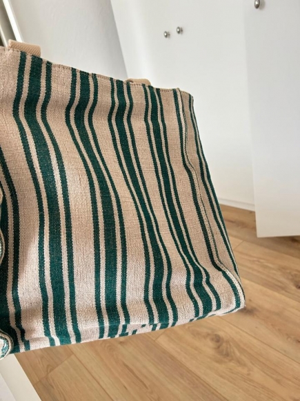 Zara Tasche grün beige gestreift shopper schultertasche