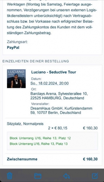 Verkaufe 2x Sitzplätze für Hamburg. 18.02.24