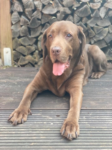 Nala ist eine knapp 15 Jahre alte Labradorhündin, die viel schläft und sehr ruhig ist.