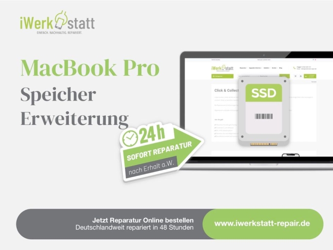 Dabei steht Zuverlässigkeit und Schnelligkeit bei der iWerkstatt an erster Stelle. So verwenden wir für unsere MacBook Pro Speicher Aufrüstung ausschließlich Marken SSDs mit passendem Apple-Anschluss von den renommierten Herstellern. Die iWerkstatt verbaut weder No-Name Speicher noch verwenden wir unstabile und anfällige Adapter!