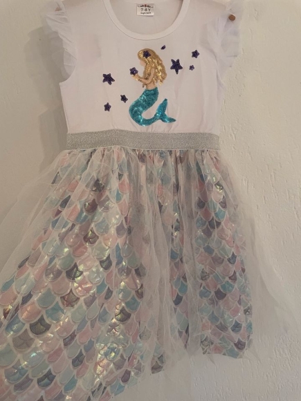 Mädchen Kleid Neu Baumwolle Meerjungfrau Pailletten Tüll Tutu 116