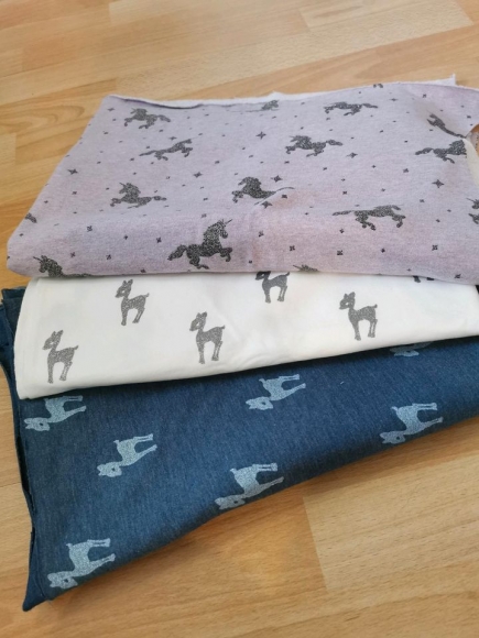 MÄDCHEN Stoffe Sommersweat French Terry Rehkitz Einhorn