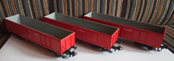 Ich verkaufe drei H0 MÄRKLIN Hochbordwagen DB Cargo ohne Originalkarton. Den Zustand entnehmen Sie bitte den Bildern.