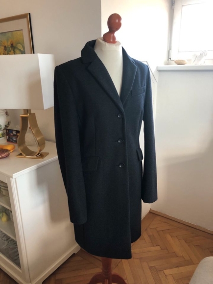 Biete neuwertigen Anthrazit-Grauen Tuchmantel der Marke Christian Berg.