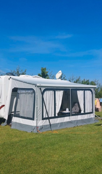Das Zelt war nur 2x aufgebaut. Abgabe, weil das Wohnmobil verkauft wurde. Es handelt sich um das Hahn Vorzelt Korsika, dass m.E. qualitativ besser ist und die besseren Eigenschaften hat. U.a. werden hier die Ecken per Reißverschluss verbunden. Incl. Verandastangen und Packtaschen im Wert von 65€.