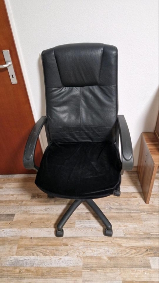 Ich verschenke einen gebrauchten Bürostuhl, der voll funktionsfähig ist. Der Sitz war etwas abgenutzt, deshalb habe ich einen selbstgenähten Sitzbezug hinzugefügt, der den Stuhl optisch aufwertet. Der Bezug ist abnehmbar und leicht zu reinigen. Bei Interesse gerne melden!