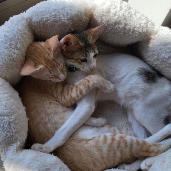 Hallo liebe Katzenfreunde - wir zwei warten gemeinsam auf unser Glück. Das ist ganz wichtig. Wir sind Geschwister, mein Name ist ISLA und ich habe einen Bruder, der ISAAC heisst. Wir waren schon immer zusammen. Ich habe mich immer schon um Isaac gekümmert, seit ich denken kann und sogar bevor wir von der Strasse gerettet worden. Da waren wir noch sehr klein. Isaac ist ziemlich wild und klettert gerne überall rum oder rauf oder runter - das kann er alles richtig gut. Aber manchmal denkt er dabei nicht so richtig nach, ja, und dafür bin ich dann da. Und abends, wenn es ruhiger wird und Isaac schlafen möchte, auch dann sucht er mich oder schon tagsüber, wenn er Hilfe braucht oder einfach wissen möchte, dass alles ok ist. So ist Isaac. Ich hab ihn sehr lieb, denn er ist mein Bruder. Ich selbst bin eine selbstbewusste, junge Katzendame, die mit allen und jedem zurecht kommt. Seien es kleine Kinder oder Hunde oder andere Katzen, ich bin gerne dabei. Natürlich spiele ich auch gerne mal mit meinem Bruder, aber ich kann dann auch gechilled zuschauen, während er sich auspowert. Ich denke zusammen sind wir ein ganz tolles Team und würden so gerne ein eigenes Körbchen haben. Vielleicht bei Dir?