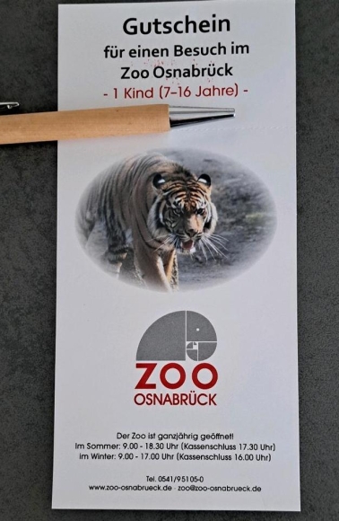 Gutschein Zoo Osnabrück für Kinder 7-16 Jahre.
