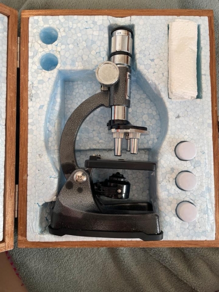 Das Mikroskop ist voll funktionsfähig aber seinem Alter entsprechend abgenutzt.