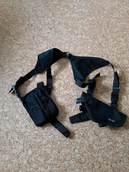 Der Holster befindet sich in sehr gutem Zustand und ist voll funktionsfähig. Er hat nicht nur den Holster für die Waffe, sondern auch noch auf der anderen Seite eine Tasche mit Platz für 2 Magazine. Waffenhalter und Magazinhalter können auch getauscht werden und ist daher für Rechts sowie Linksschützen geeignet. Der Holster bietet auch genug Platz für große Modelle. Bei Fragen oder Interesse gerne eine Nachricht schreiben.