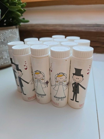 verkaufe 14 Flaschen Seifenblasen mit niedlichem Hochzeitsdesign.