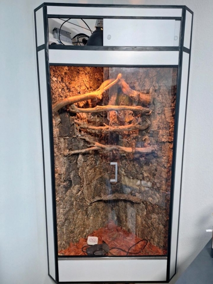 Ich verkaufe einen modernen Eckterrarium mit Deko, Beleuchtung 2 Lampen, Regenanlage so wie es zu sehen ist.