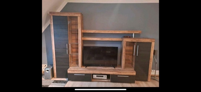 Ich gebe diese Wohnwand wieder ab, weil ich festgestellt habe, dass sie in unserem Ferienhaus in Hooksiel doch zu groß ist für ein kleines Zimmer.
