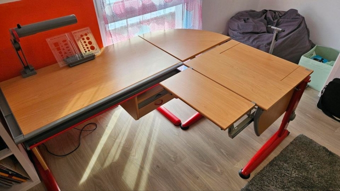 Verkauft wird ein Kinderschreibtisch mit Beistelltisch und einer Schreibtischlampe. Der Zustand ist gut und nur mit sehr wenig Gebrauchsspuren. Die Qualität und Verstellmöglichkeiten von Moll sind bekannt und müssen nicht weiter beschrieben werden. Da unsere Tochter aber bereits 14 Jahre alt wird, möchten Sie nun eine Veränderung in ihrem Zimmer. Die Tische können auch einzeln aufgestellt werden.