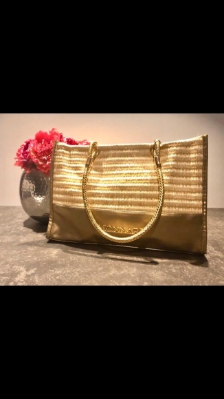 Damen-Shopper-Tasche (42, 29, 10 cm) aus kombinierten Materialien. Die Tasche hängt an Henkeln, hat einen Reißverschluss an der Oberseite, ist einteilig und hat ein helles Futter mit Logo und Fächer für kleine Gegenstände. Auf der Vorderseite eine Schmuckaufschrift mit dem Logo der Marke Monnari.