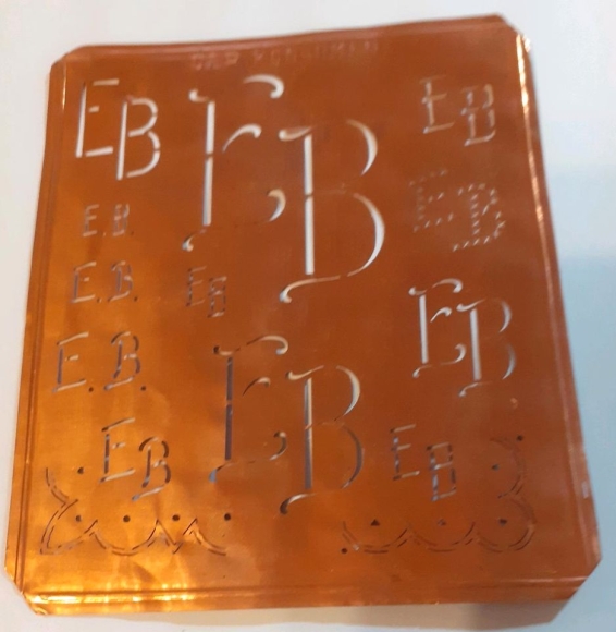 Monogrammschablone alt aus Kupfer mit " EB "