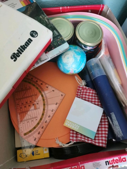 2 Spitzer und 2 Schere und 1 Klebstoff UHU