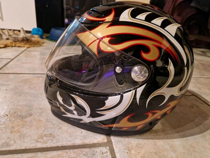 verkaufe ein älteren Motorrad Helm von Craft Helmet mit cooler beklebung der Helm Ist nicht mehr zum fahren zu gebrauchen aber ne coole Deko