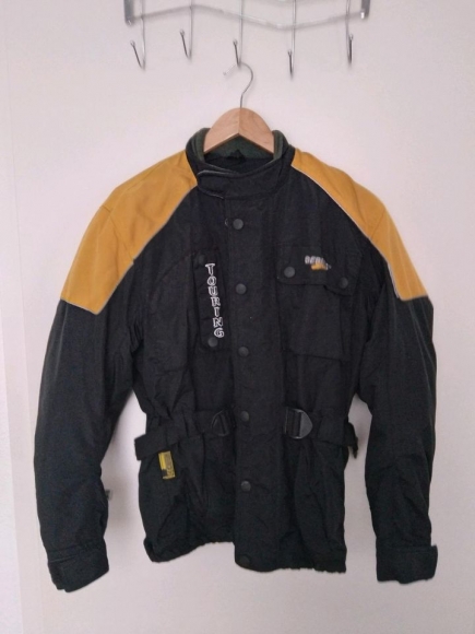 die Jacke kann an den der Taille in der Weite verstellt werden. an den Ellbogen sind Schutzkappen eingenäht. die Jacke ist nicht kaputt, allerdings schon etwas in die Jahre gekommen.