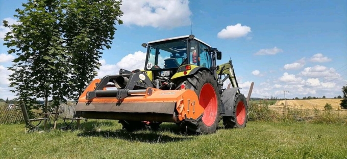 Unser Schlegelmulcher hat eine Arbeitsbreite von 250 cm, die Arbeitsgeschwindigkeit beträgt je nach Terrain zwischen 4 und 7 km/h.