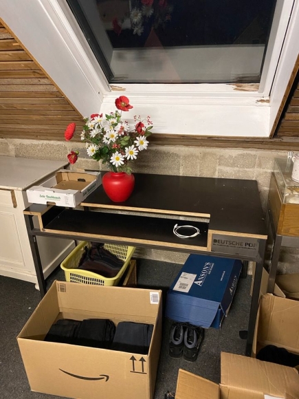 Man kann den Tisch in 2 Teile zerlegen, also die Holzplatte und den Metall Unterbau