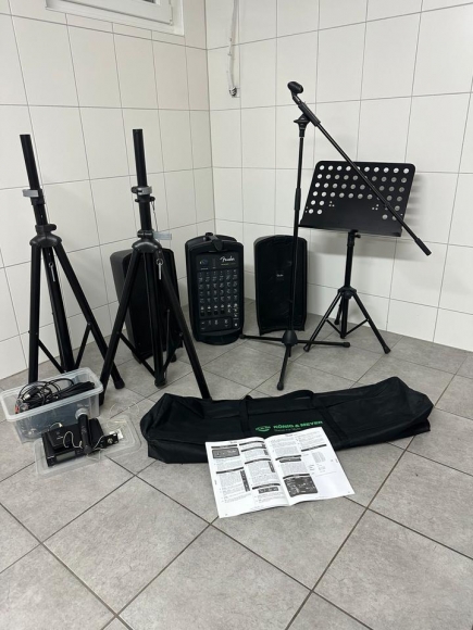 Musikanlage mit Zubehör Shure, Fender,König&Meyer 450Watt Blue