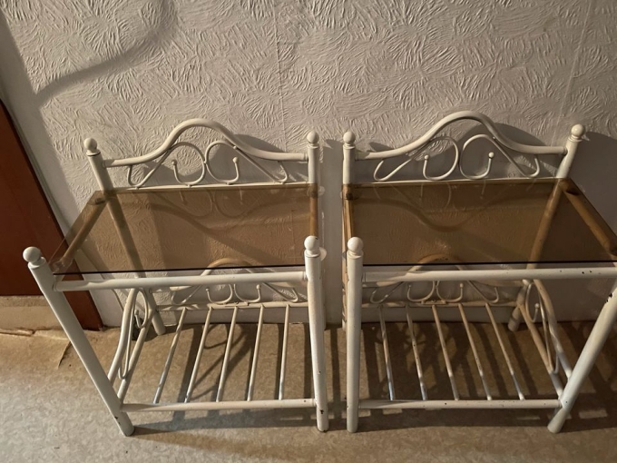 Zwei entzückende Nachttische suchen ein neues Domizil. Ursprünglich waren sie schwarz und wurden weiß lackiert im Shappy Look.