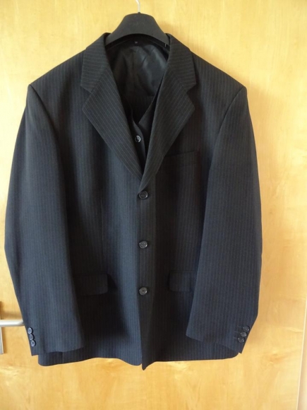 Nadelstreifen-Anzug bestehend aus Jackett, Weste und Hose, Gr. 56 XXL, - 3-teilig, in sehr gutem Zustand (siehe Bilder)